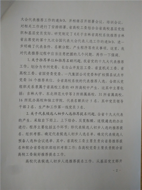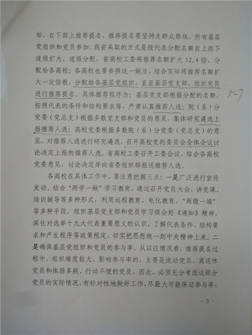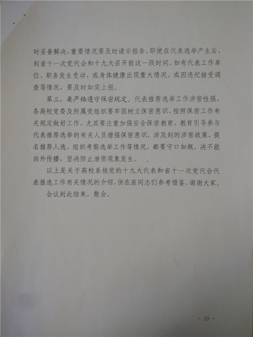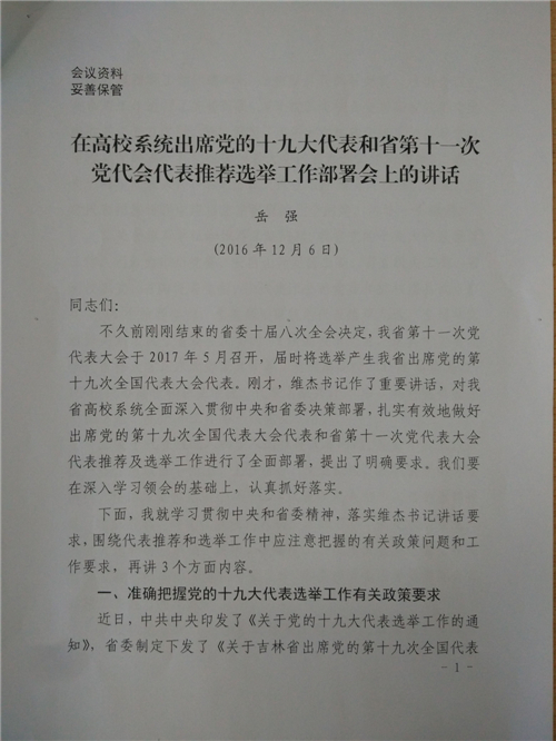 《在高校系统出席党的十九大代表和省第十一次党代会代表推荐选举工作部署会上的讲话》